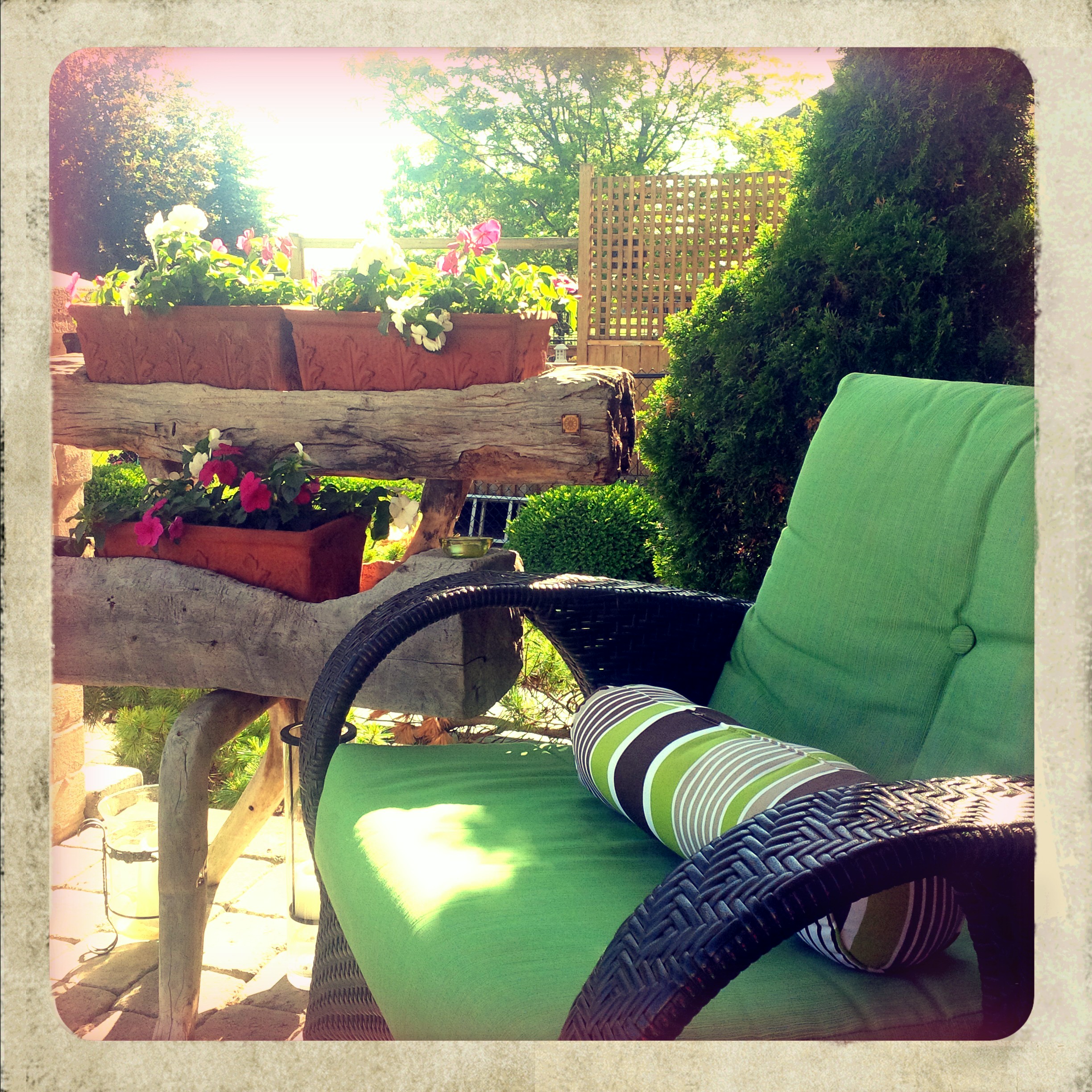 Connection is not just for those times of beauty, peace, joy. Mindfulness practice encourages us to be equally present for those not-so-nice moments; ones that might be filled with frustration, anger, impatience, doubt, regret. Like waiting in an airport line-up, or being cooped up in the car for too long, or eating too much, or having a crappy night’s sleep. While these are the less pleasant realities of summer vacation travel, they are nevertheless part of the whole experience of BEING. And like anything, they are transient and impermanent and all but forgotten (if we can let them go and not re-hash them over and over) as soon as the next pleasant moment arrives. So in answer to the question “What did you do on your summer vacation?”, I would say I SAW, I FELT, I ROSE UP, I FELL DOWN, I TOOK A BREATH, I LAUGHED, I CRIED, I SWORE, I LIVED…and then I came home to my comfy green chairs and CHILLED…What did YOU do on your summer va-cay?
