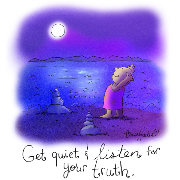 Being quiet takes courage and bravery…and the willingness to go to places where we have not let ourselves go out of fear or denial. Being quiet means dealing with your SHIT. If we can do so within the container of self-love, self-compassion, self-acceptance, and self-forgiveness, then we truly can see what is holding us back or what is holding us down. When we SEE what is real, we can then move forward skillfully, making choices that support growth rather than hinder it. In fact, in silence we often find our VOICE so that what emerges is a new-found confidence and expression of our true selves, not our made-up selves.